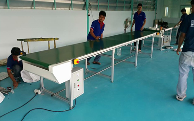 รับออกแบบ ติดตั้ง เคลื่อนย้าย เครื่องจักร ระบบลำเลียง บริการตัดต่อสายพาน pvc belt conveyer lfda pvc pu rubber assembly line belt